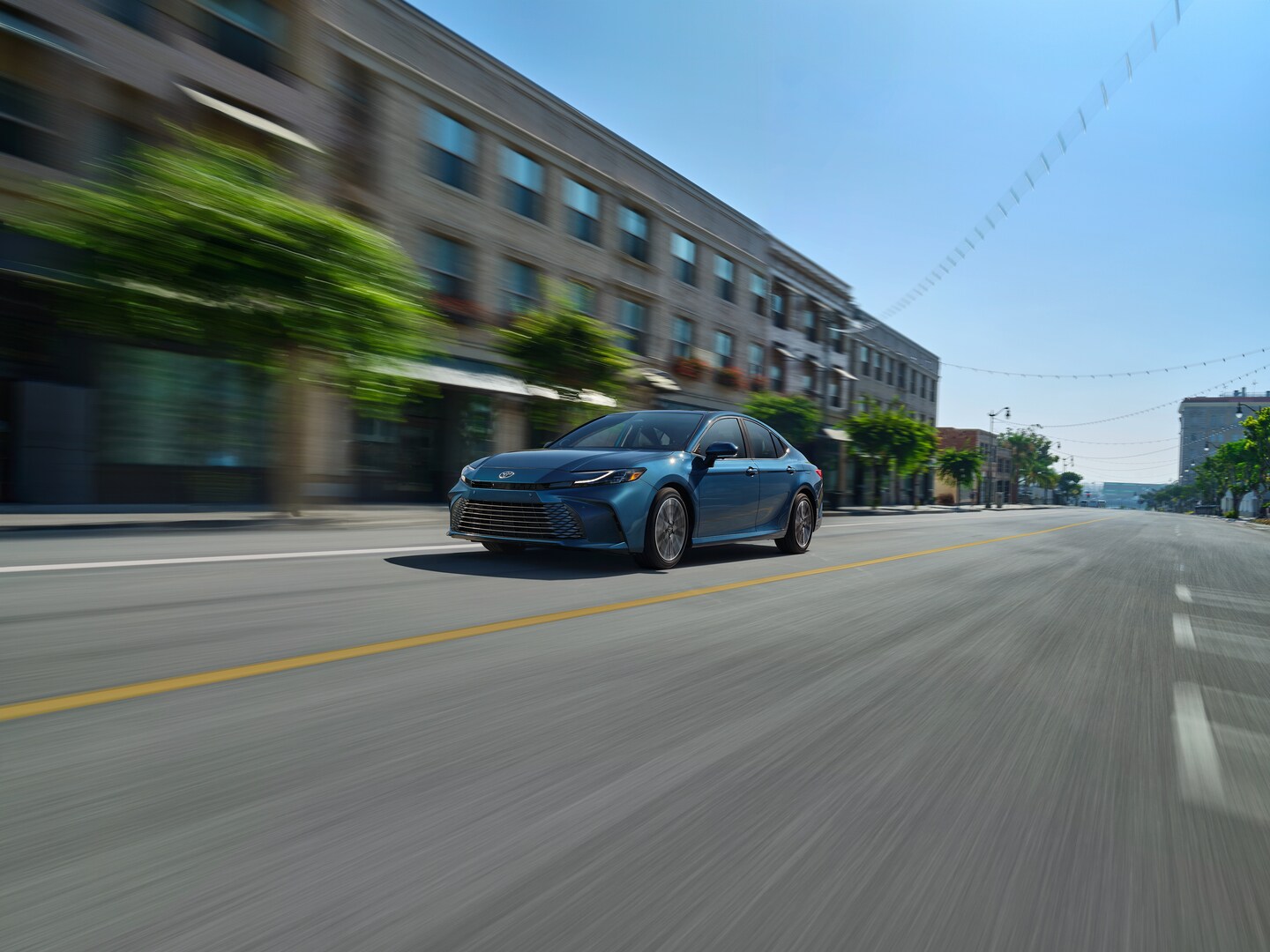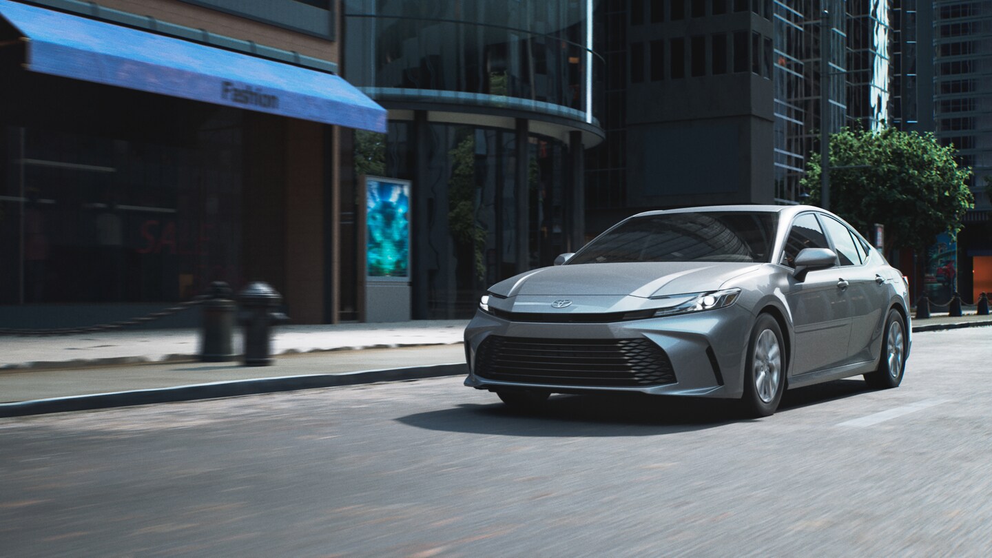 New Toyota Camry sedans feature an attractive design with sharp LED lighting, sleek metallic or black accents, and chiseled bodylines. XSE models incorporate 19-inch wheels, a sporty mesh grille, and aerodynamic accents, while XLE models offer chrome-finished trim for a refined look. Plus, the Toyota Camry lineup offers 10 unique color options to express your personality, including popular colors like Supersonic Red, Ocean Gem, Reservoir Blue, or Wind Chill Pearl.